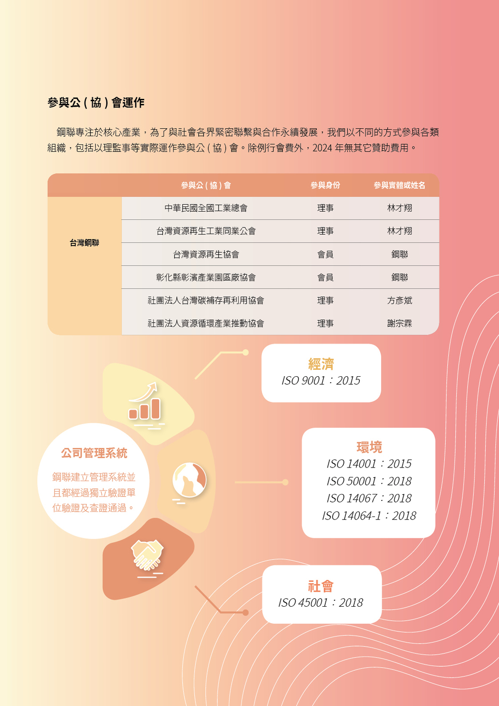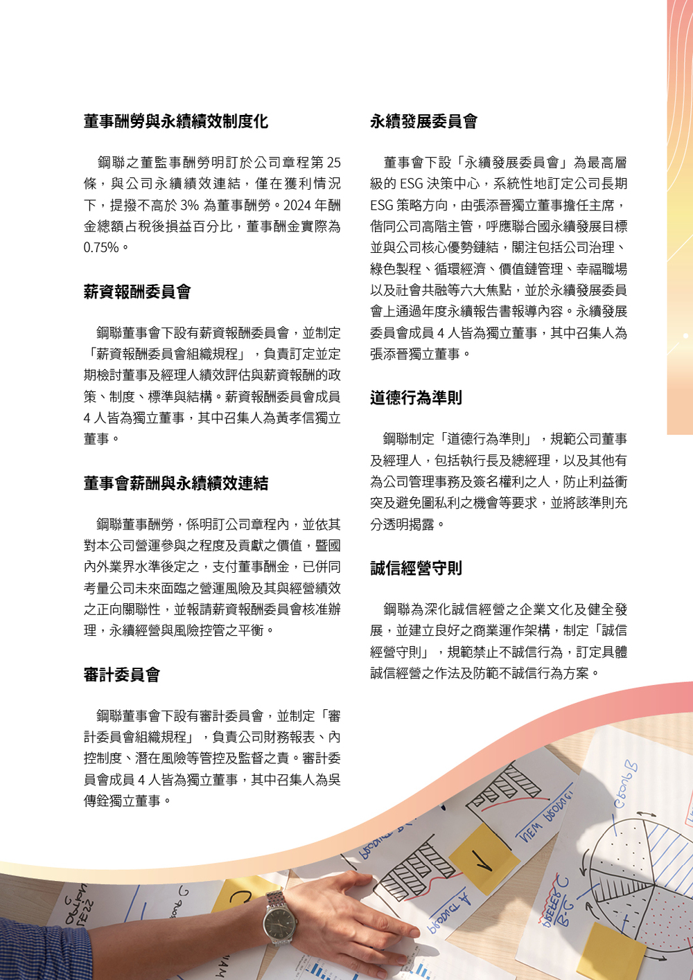 公司治理概況 Home / 公司治理 / 公司治理概況 選單經營者的話 永續發展目標 管理方針及亮點 公司治理概況 產品與經濟績效 重大主題管理 氣候變遷 資安政策 公司治理 公司治理 循環經濟 綠色製程 幸福職場 價值鏈管理 社會共融 ESG績效 經營者的話 永續發展目標 管理方針及亮點 公司治理概況 產品與經濟績效 重大主題管理 氣候變遷 資安政策 上一篇: 管理方針及亮點 下一篇: 產品與經濟績效 ESG績效 永續報告書 公司治理 經營者的話永續發展目標管理方針及亮點公司治理概況產品與經濟績效重大主題管理氣候變遷資安政策 循環經濟 管理方針及亮點循環經濟推手爐碴再利用新增廢棄物量能成長廢棄物管理鋼聯資源循環經濟貢獻上下游產業鏈共同參與 綠色製程 管理方針及亮點綠色製程系統環境政策與管理系統營運生態效率水風險管理環境監測及法規 幸福職場 管理方針及亮點人力資源管理人才吸引及留才職業安全衛生獎金政策人權政策執行情形 價值鏈管理 管理方針及亮點供應鏈管理運輸安全法規客戶關係管理 社會共融 管理方針及亮點社區衝擊評估社區關懷循環經濟教育