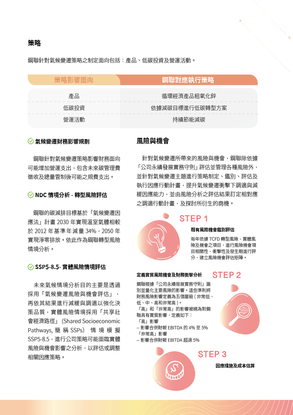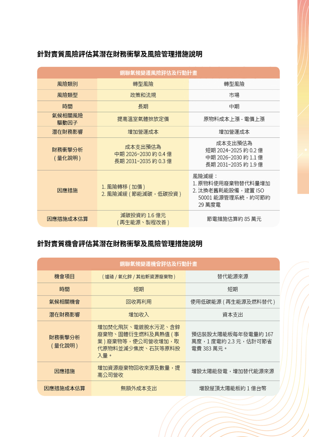 氣候變遷 Home / 公司治理 / 氣候變遷 選單經營者的話 永續發展目標 管理方針及亮點 公司治理概況 產品與經濟績效 重大主題管理 氣候變遷 資安政策 公司治理 公司治理 循環經濟 綠色製程 幸福職場 價值鏈管理 社會共融 ESG績效 經營者的話 永續發展目標 管理方針及亮點 公司治理概況 產品與經濟績效 重大主題管理 氣候變遷 資安政策 上一篇: 重大主題管理 下一篇: 資安政策 ESG績效 永續報告書 公司治理 經營者的話永續發展目標管理方針及亮點公司治理概況產品與經濟績效重大主題管理氣候變遷資安政策 循環經濟 管理方針及亮點循環經濟推手爐碴再利用新增廢棄物量能成長廢棄物管理鋼聯資源循環經濟貢獻上下游產業鏈共同參與 綠色製程 管理方針及亮點綠色製程系統環境政策與管理系統營運生態效率水風險管理環境監測及法規 幸福職場 管理方針及亮點人力資源管理人才吸引及留才職業安全衛生獎金政策人權政策執行情形 價值鏈管理 管理方針及亮點供應鏈管理運輸安全法規客戶關係管理 社會共融 管理方針及亮點社區衝擊評估社區關懷循環經濟教育